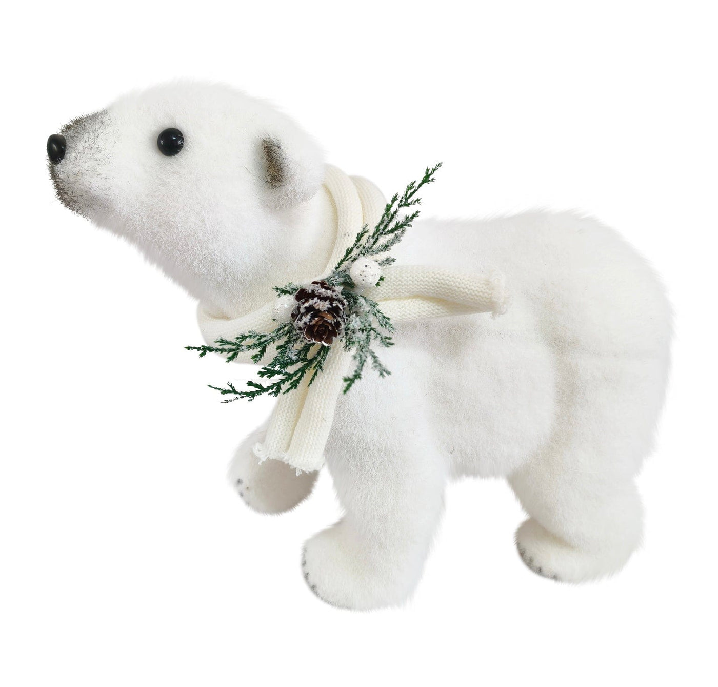 - Crafted with a Soft Flocked Finish with a Foam Core, Pine and Pinecone Accents with Knitted Scarf
