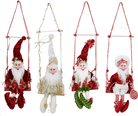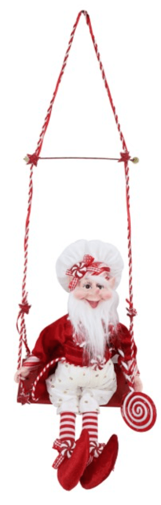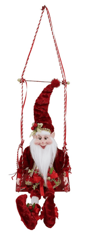 Swaying with Christmas glee, Grandfather Elf On Swing, merry as can be! These endearing and enchanting Elves bring a touch of old-world charm to your Christmas decor.