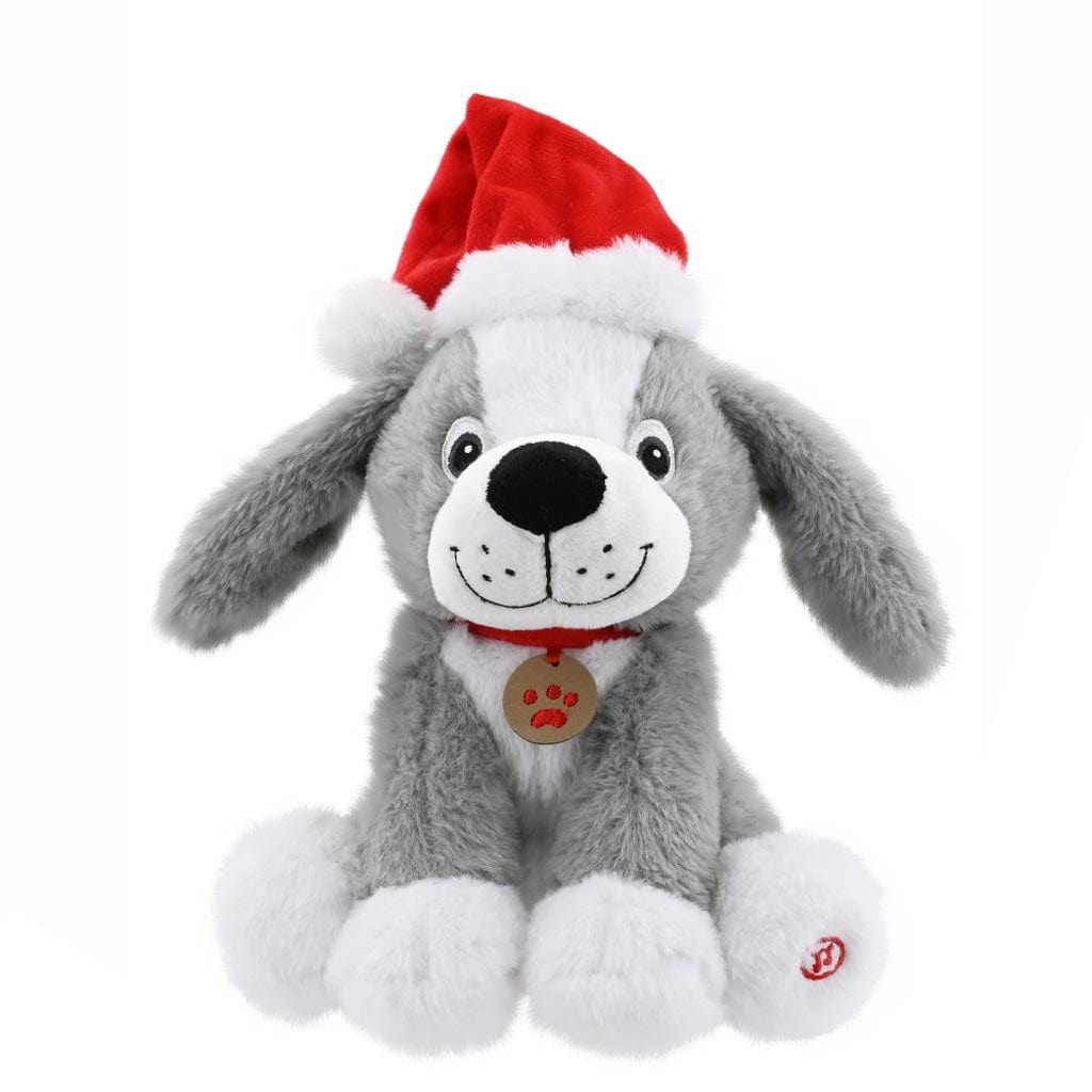 Perfect for adding a touch of whimsy to your holiday decor or as a playful gift for loved ones, this puppy is sure to bring smiles to all ages. Its compact size makes it ideal for placing under the tree, on a mantel, or as a centerpiece for holiday gatherings. Bring home the Musical Christmas Puppy with Flapping Ears and let the festive fun begin!