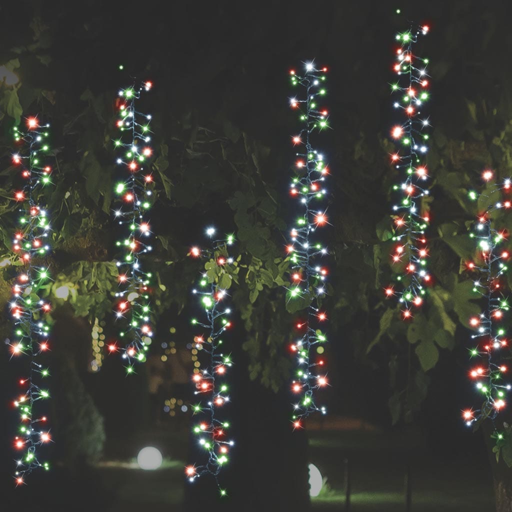 These Solar LED Icicle Cluster Lights deliver stunning red-white-green illumination, creating a dazzling visual effect.