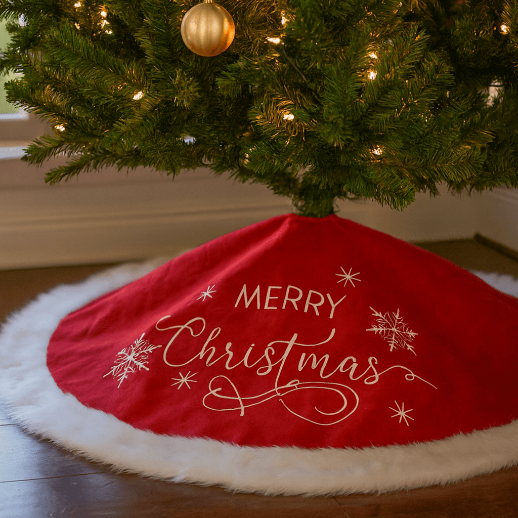 Merry Christmas Plush Tree Skirt (120cm) Sale
