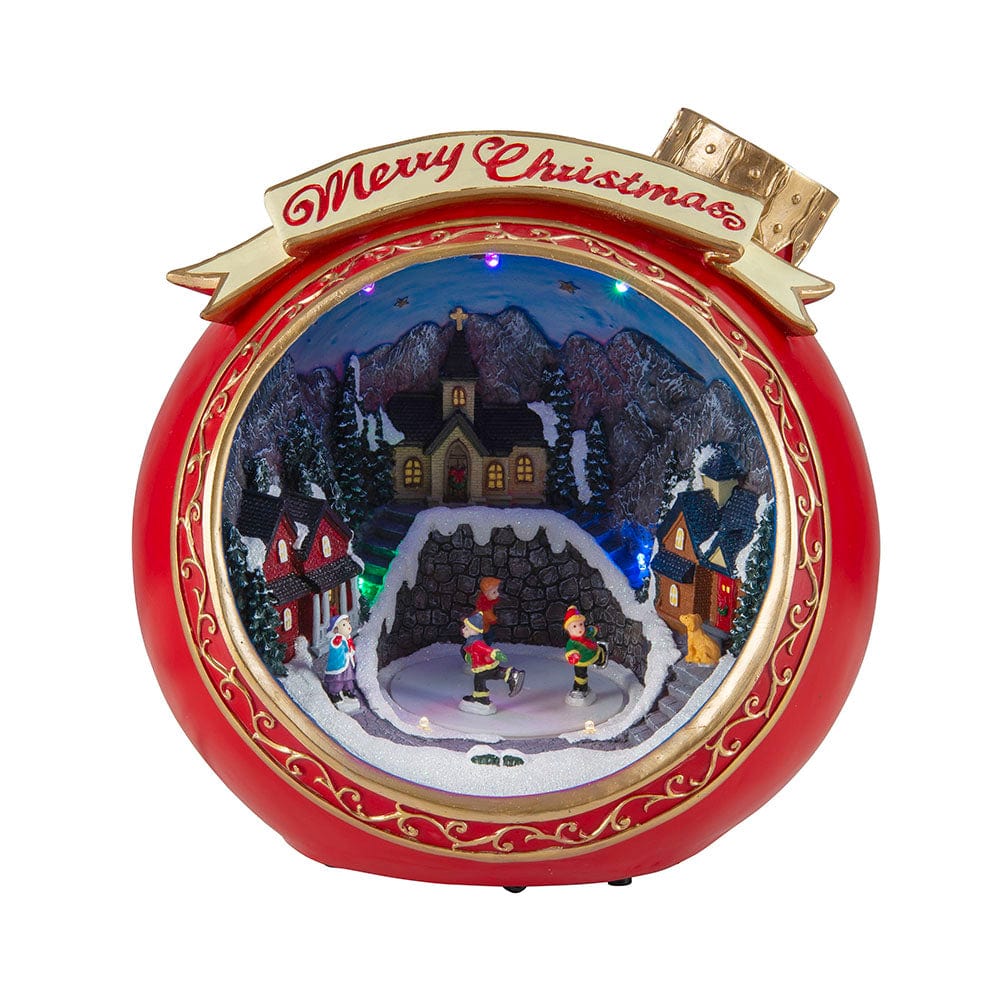 Step into a realm of enchantment encapsulated within this timeless Bauble. Witness the magic as a festive skate scene unfolds before your eyes, illuminated by twinkling LED lights and accompanied by delightful melodies.