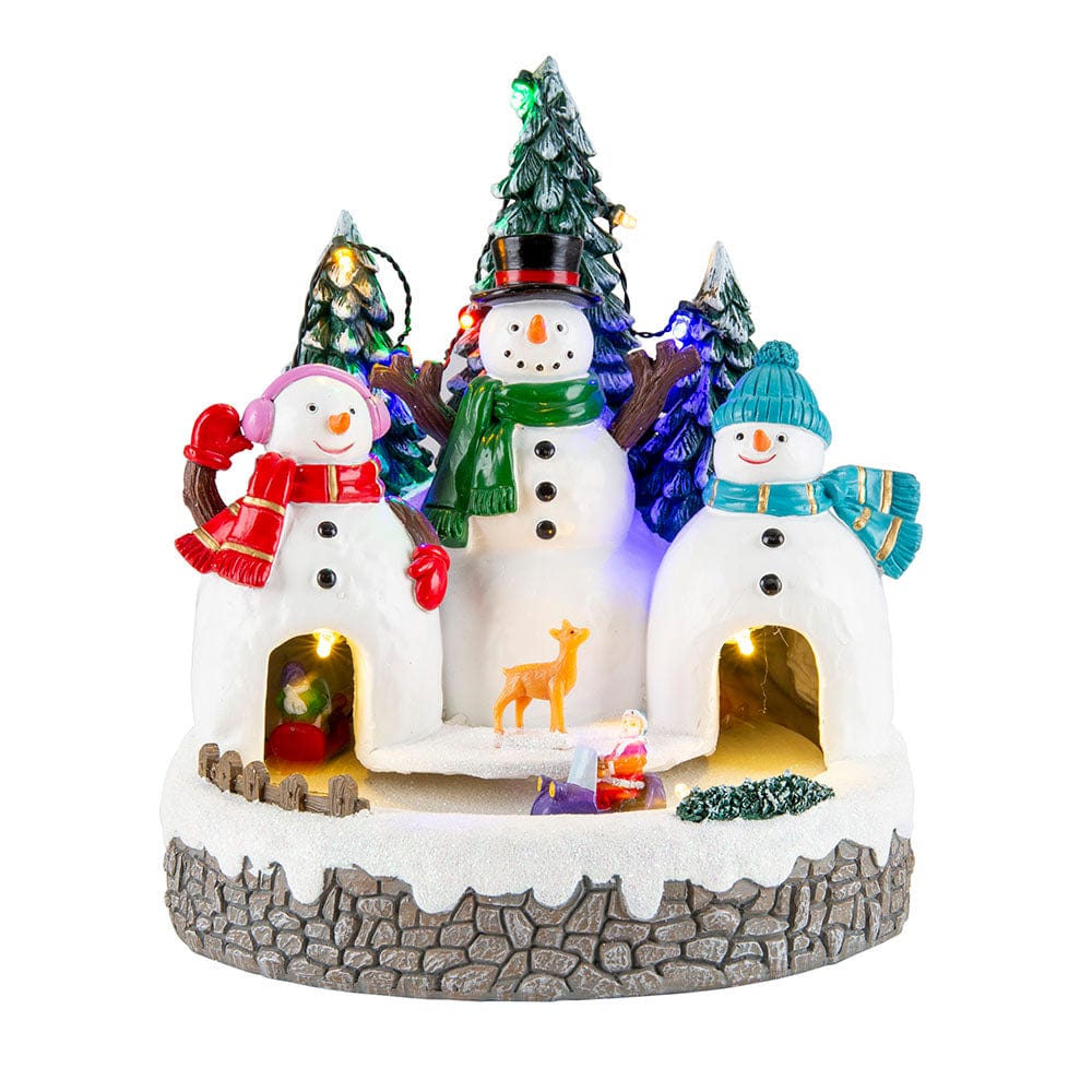 Watch in awe as this enchanting scene comes to life, with a charming Snowman Castle amidst a flurry of twinkling LED lights and joyful melodies.