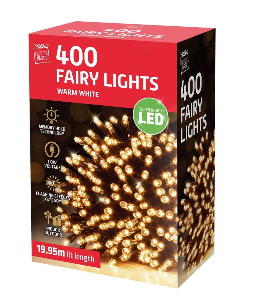 Experience the joy of the season in full splendour with our 400 LED Flashing Warm White Lights. Whether Indoors or Outdoors, their captivating twinkle will light up your holidays with a festive brilliance that captures the essence of Christmas. Adorn your tree with the vibrant and twinkling charm of these Lights, wrap them around your stair railing, drape them along your mantel, or create a whimsical glow within your living spaces. Illuminate your outdoor areas, from your porch railing to trees, creating a cheerful atmosphere that welcomes both guests and the Christmas spirit.