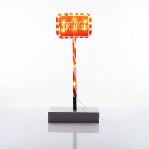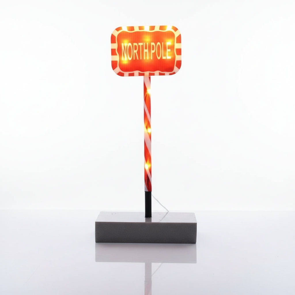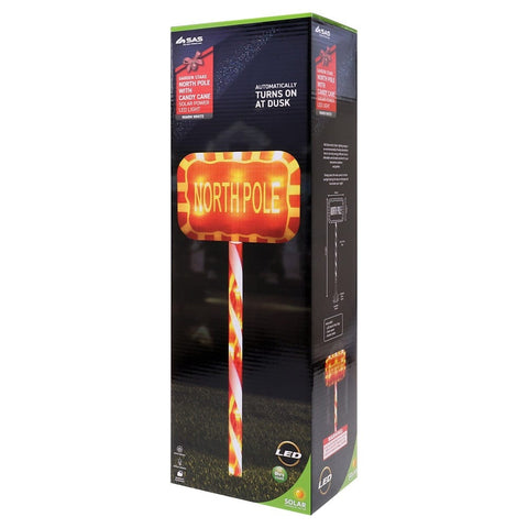 Brighten the cheer with this jolly Solar North Pole Sign, featuring a candy-striped pole and a glowing sign to enhance your Holiday set up.