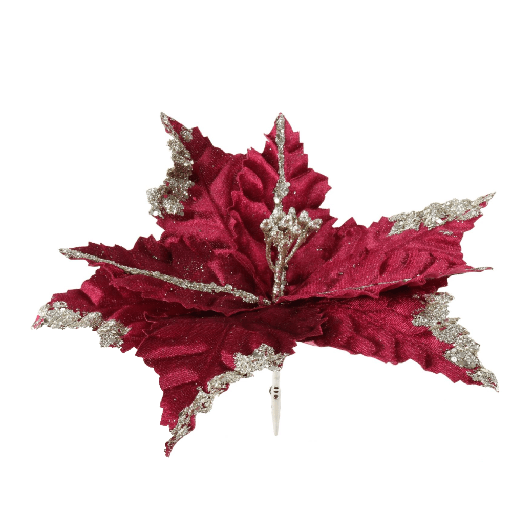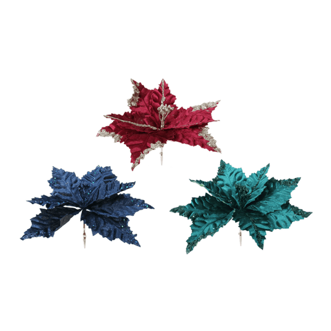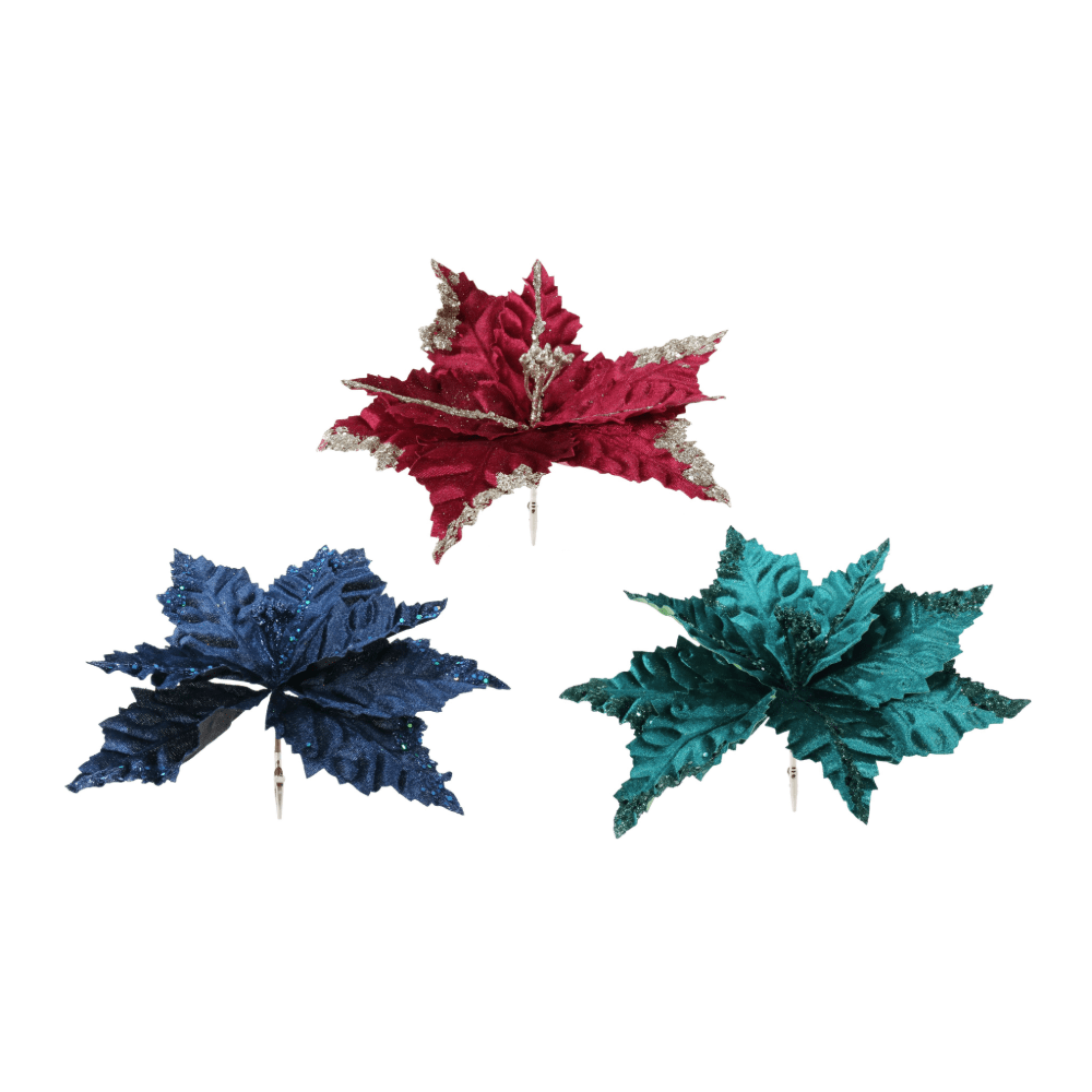 Unleash your creativity and mix and match with other decorations and accessories to craft a personalized and dazzling display that perfectly reflects your theme and style preferences. With its flexibility and glamorous appearance, this Ponsiettia Velvet Clip is poised to elevate your Christmas and event décor to an entirely new level of sophistication and charm! Pair it effortlessly with oversized bows or polished ornaments to create a cohesive look that captivates attention. Whether adorning wreaths, garlands, or your Christmas tree, or serving as a filler in your festive floral arrangements, this pick promises to add an exquisite touch to every corner of your space.